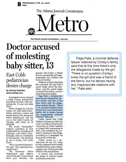 Our firm is retained by the family of an East Cobb County pediatrician to represent him against child molestation charges.
