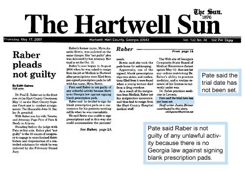 Atlanta defense attorney Page Pate defends a Hart County physician against false allegations of unlawful distribution of prescription drugs.