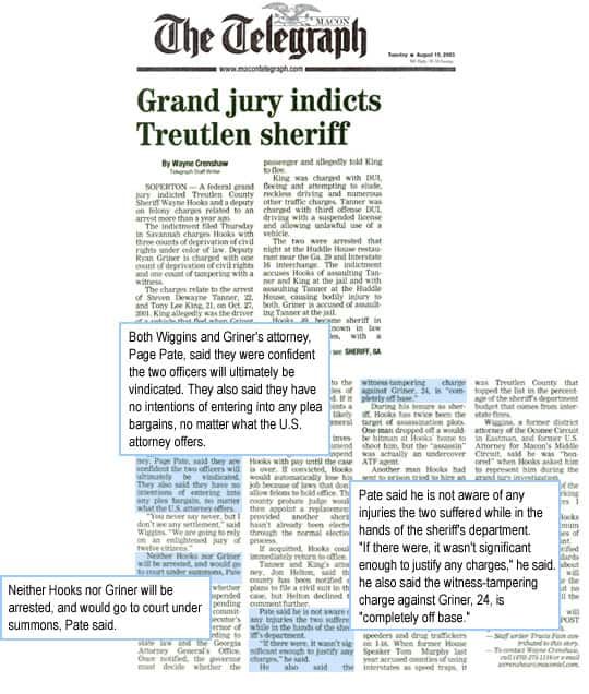 Our firm refuses to plea bargain in federal criminal case against Treutlen County Sherriff and deputy. We win justice for our clients at trial.